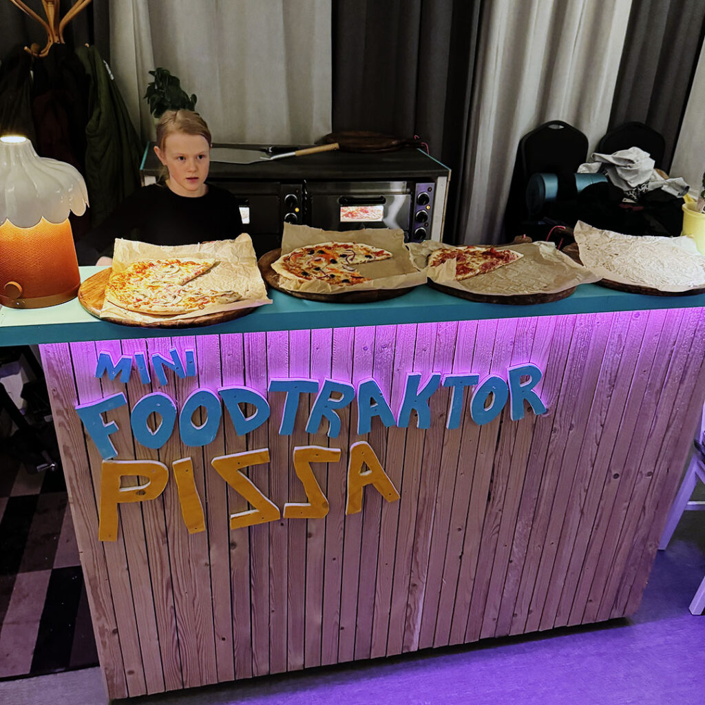lockade ett 20-tal till Byahuset, trots ett jättebistert väder med vind, som inte var att leka med. Inomhus var det varmt och mysigt med tända ljus överallt. Och där stod Gustav och Majlis och bakade pizzor på löpande band. Hur kunde det gå till? Jo, det var premiär för Gustavs senaste tillskott – en mini pizzatraktor, som lätt kunde sättas i Byahusets stora rum. Och det var som vanligt en glad och trevlig stämning med mycket prat och skratt.