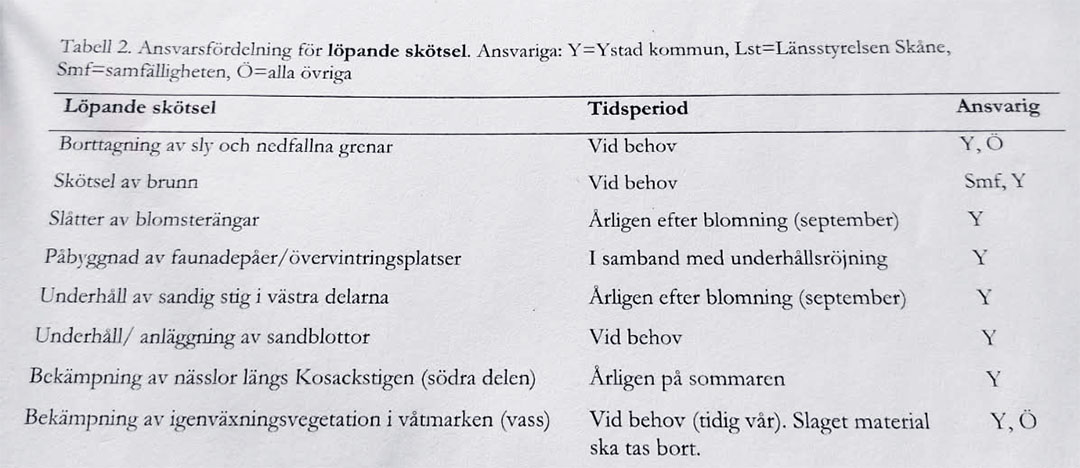 En SKÖTSELPLAN är upprättad och ser ut som följer;